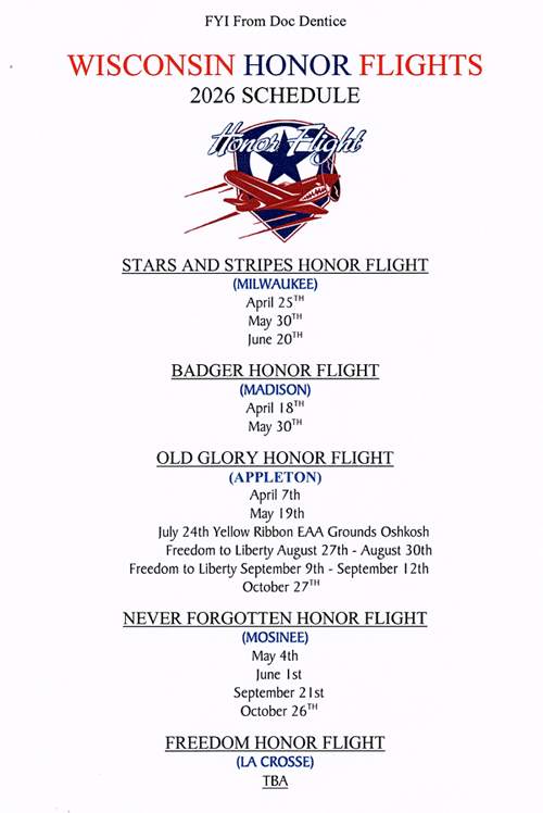 Welcome To "Docs" WI. Honor Flights / Vets Roll Page